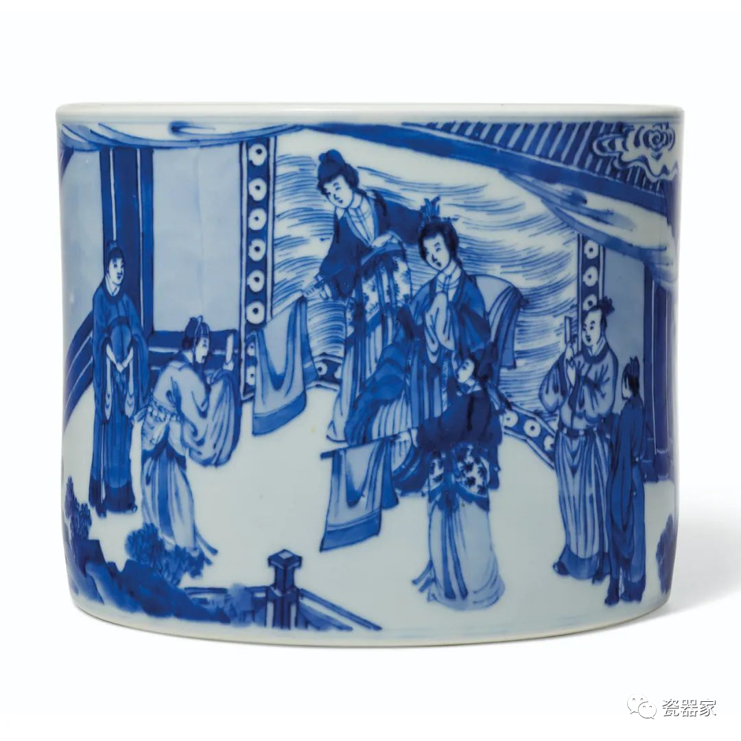 Lot 853 过渡期 十七世纪 青花人物故事图筒式瓶