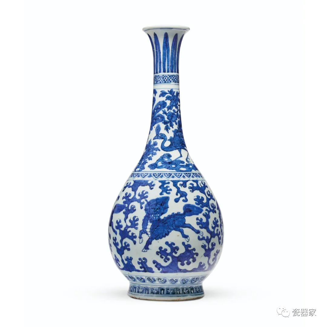Lot 854 明嘉靖末/万历初 十六世纪 青花麒麟纹大长颈瓶