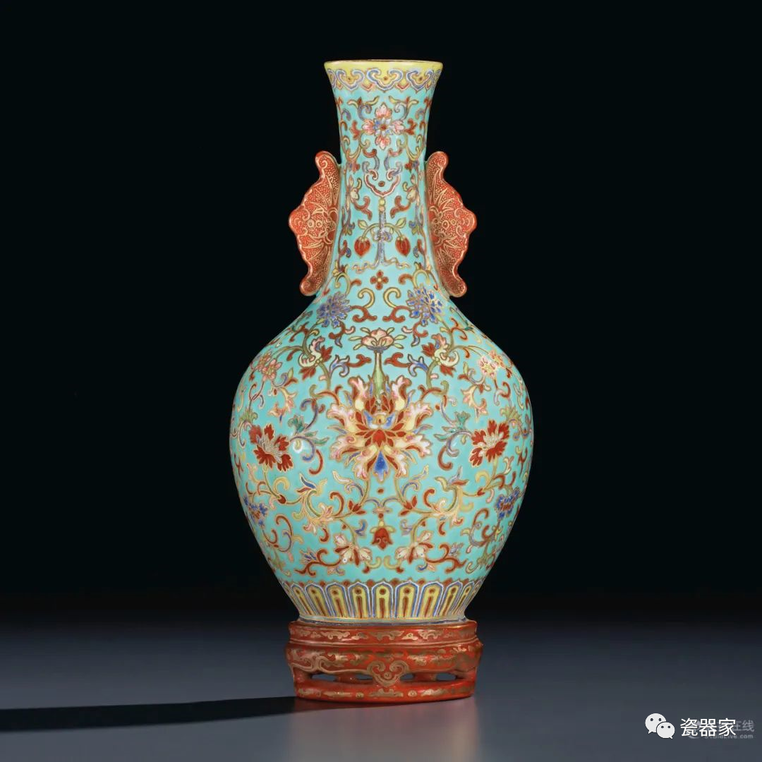 Lot 947 清乾隆 粉彩莲蝠纹抱月瓶 (掐丝珐琅颈为后加)