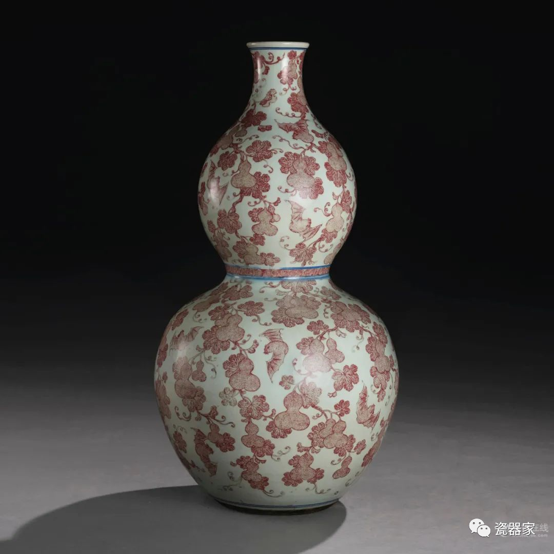Lot 952 清十八/十九世纪 青花釉里红福禄纹大葫芦瓶