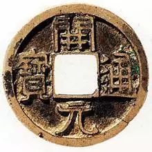 开元通宝为唐代货币。钱币在唐代始有“通宝”,表示这是四海之内通行的宝货。唐初仍沿用隋代的五铢旧钱,轻小淆杂。唐高祖李渊武德四年(公元621年),为整治混乱的币制,废隋钱,效仿西汉五铢的严格规范,开铸“开元通宝”,取代社会上遗存的五铢。“开元”,有开国纪元之说,亦有开新世纪之元的意思。 ![]()