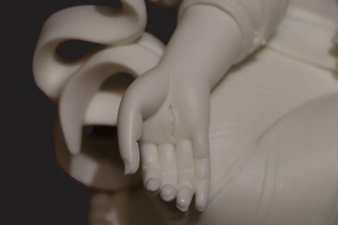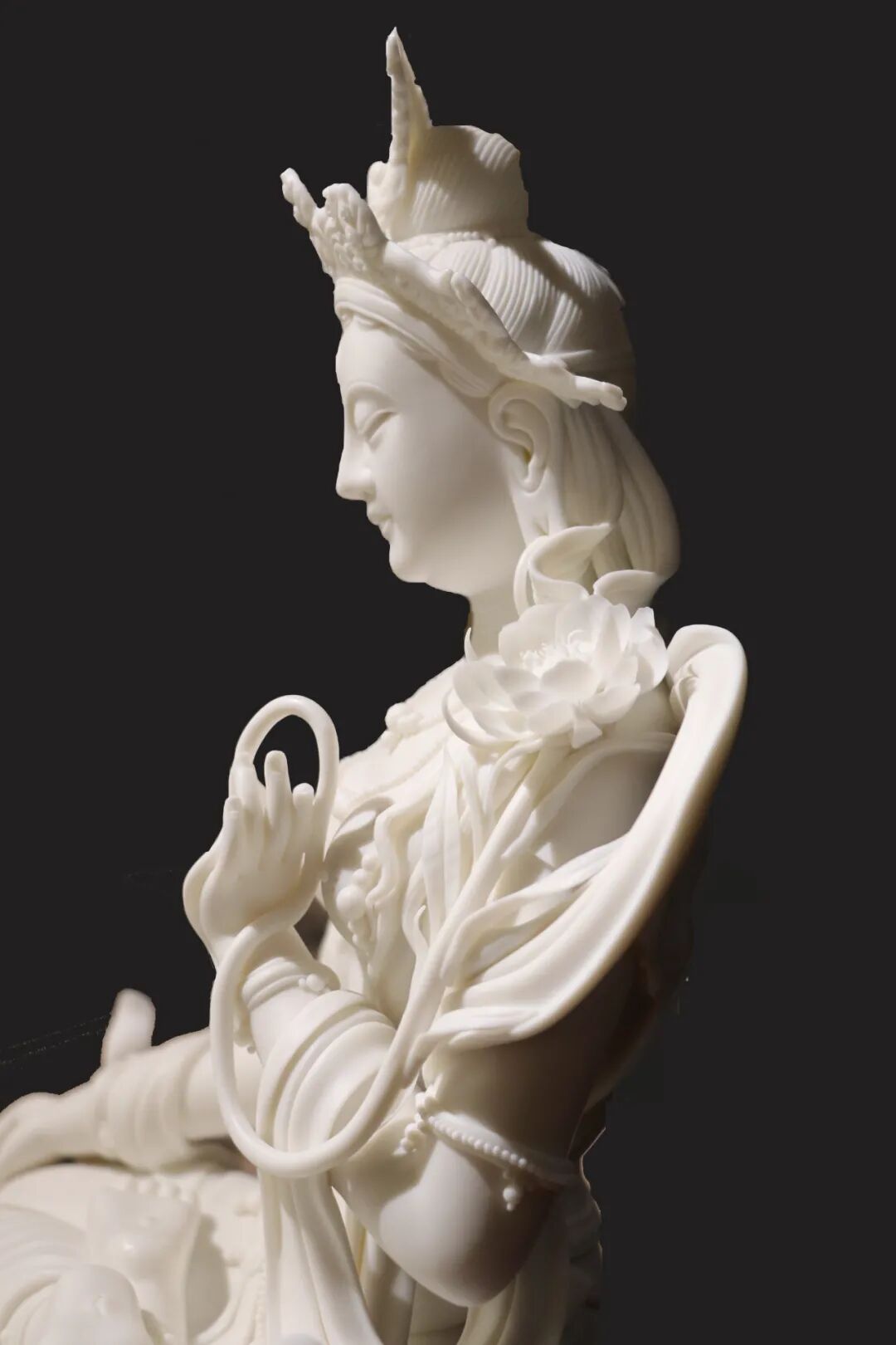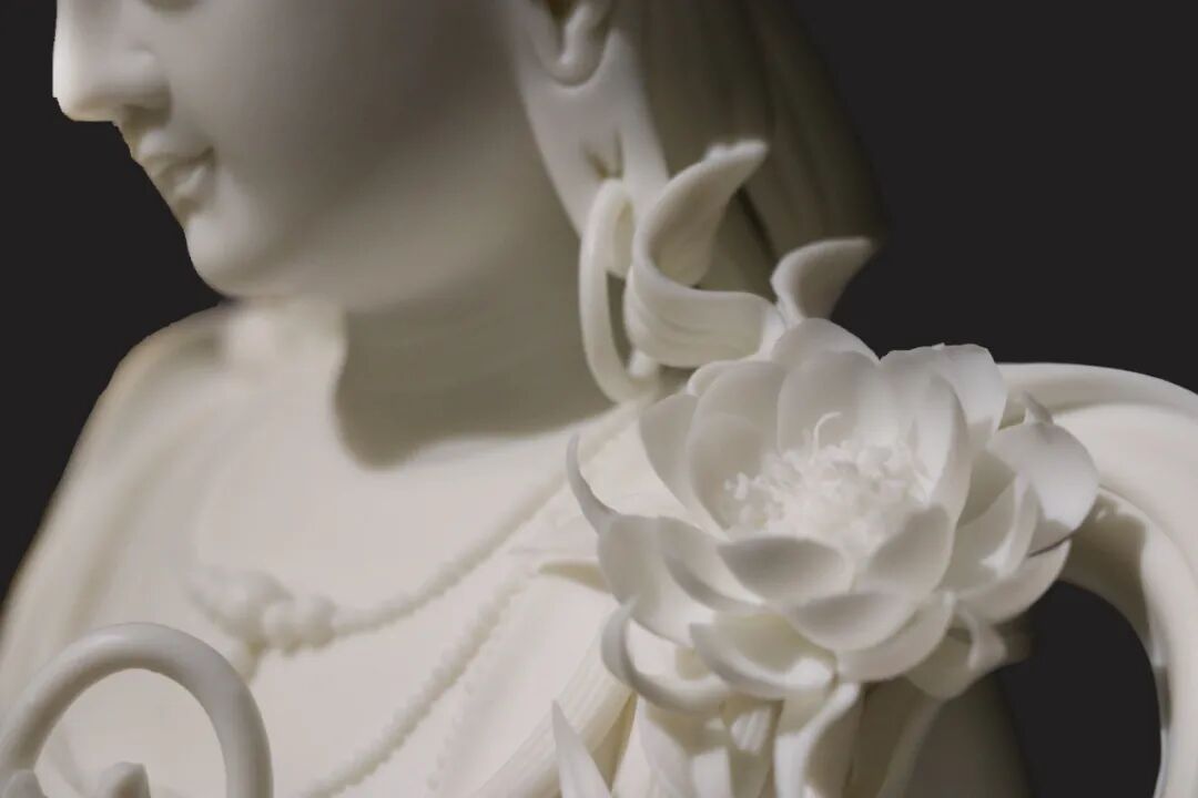 《白度母》是徐才提的陶艺代表作品之一,同系列作品曾经被中国国家博物馆收藏,彰显了其优秀的创作实力与广泛的艺术公信力。白度母是藏传佛教重要的女性神祇之一,这一系列作品体现了德化白瓷的魅力,表达了作者对于祥瑞和善之美与和平、纯净自性的追求。