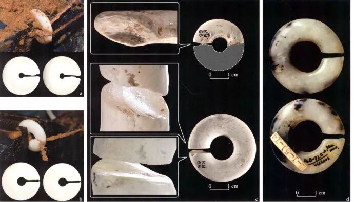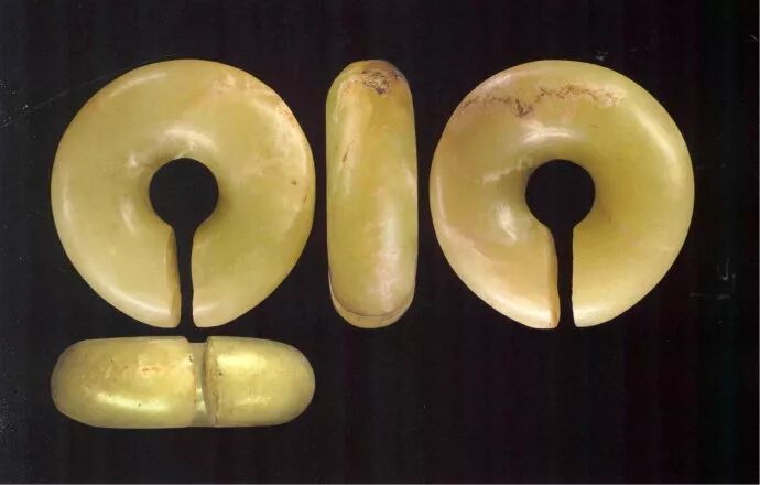 1992年秋,从兴隆洼遗址发现了第一对玉玦饰,出土在117号墓人头骨的两侧,据此确认早期的玦饰就是耳环。