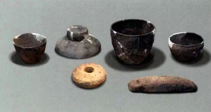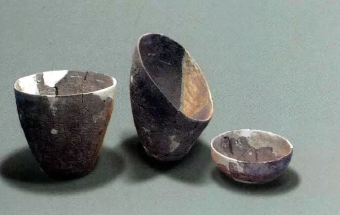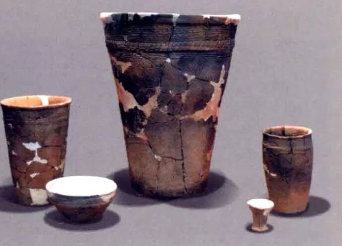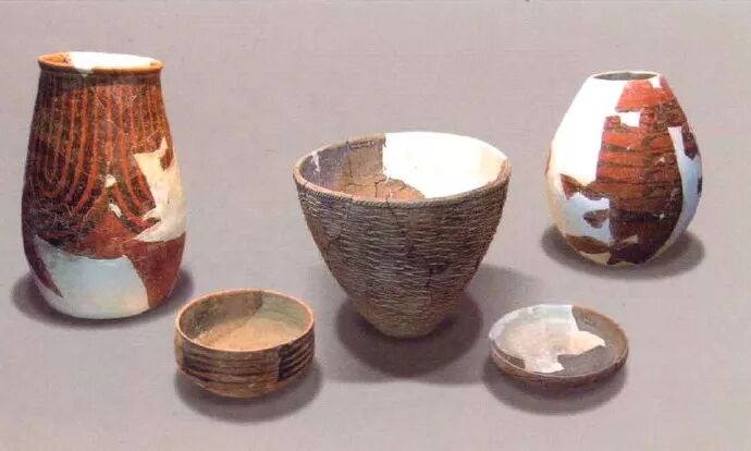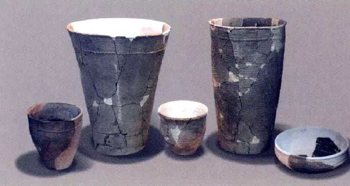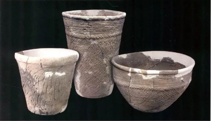 兴隆沟遗址第二期陶罐、陶钵、陶杯。