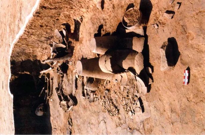 居室葬:兴隆沟遗址22号房址西北部。居住面出土男女及小孩4具人骨及大量陶器。