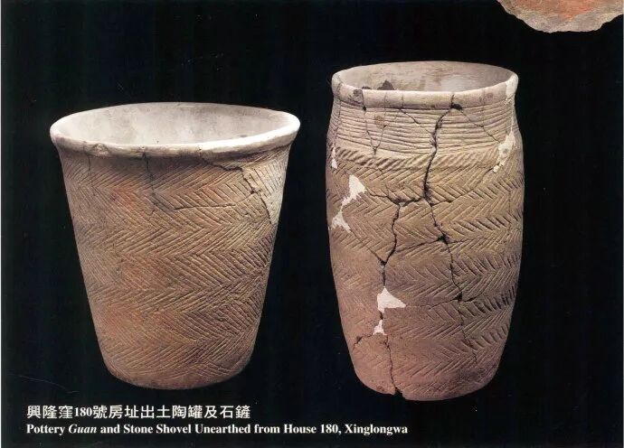 兴隆洼遗址出土红山文化第一期陶罐、斜口陶器及陶钵。在兴隆洼遗址,有少数红山文化房址打破兴隆洼文化的房址。