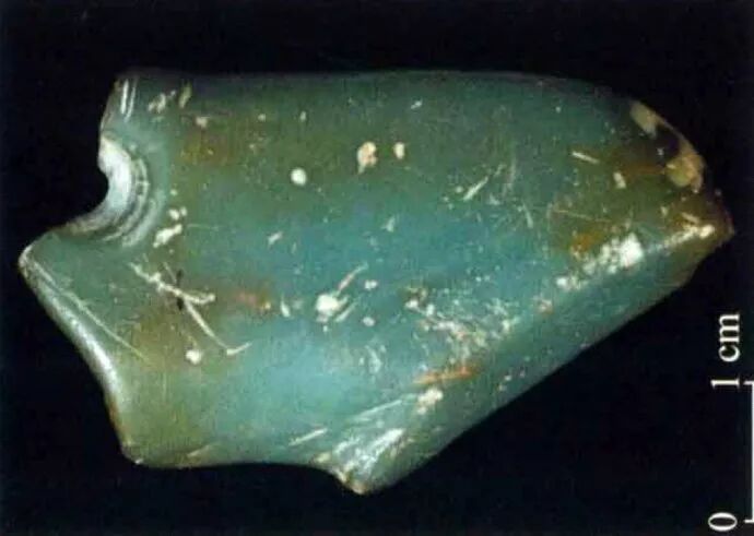 俄罗斯阿尔泰Denisova洞穴出土旧石器时代晚期距今约38000年前高岭岩腊石坠饰。