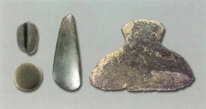 小河西文化石铲、石斧、饼形石器及箭杆整直器。
