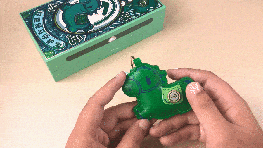 它由国内文创先行品牌东来也特别推出,以绿色小马为核心造型,采用质感皮革面料制作,质感细腻,萌趣十足,传递着乐观阳光,积极向上的生活态度。
