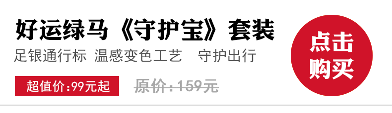 背上镶嵌1.5g999足银标通行标识,寓意马上平安、马上通行。