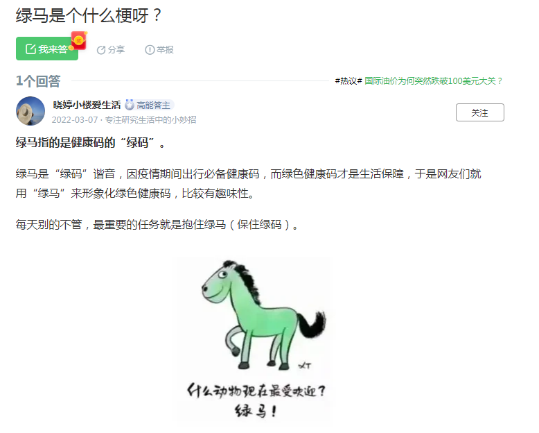 “请出示绿码”,成为了人们日常出行的灵魂拷问,“抱住绿马”,成了新兴的网络流行语。