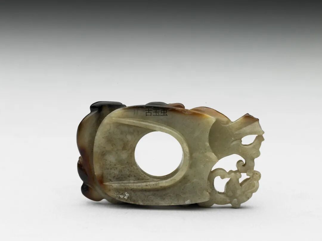 「韘」原是古人射箭时戴於右手大拇指上,用来钩弦的工具。至汉代,形制上演变成主体作心形,两侧作对称的镂空花纹的佩饰器,称作「韘形佩」。
