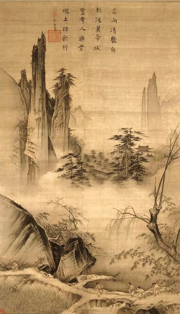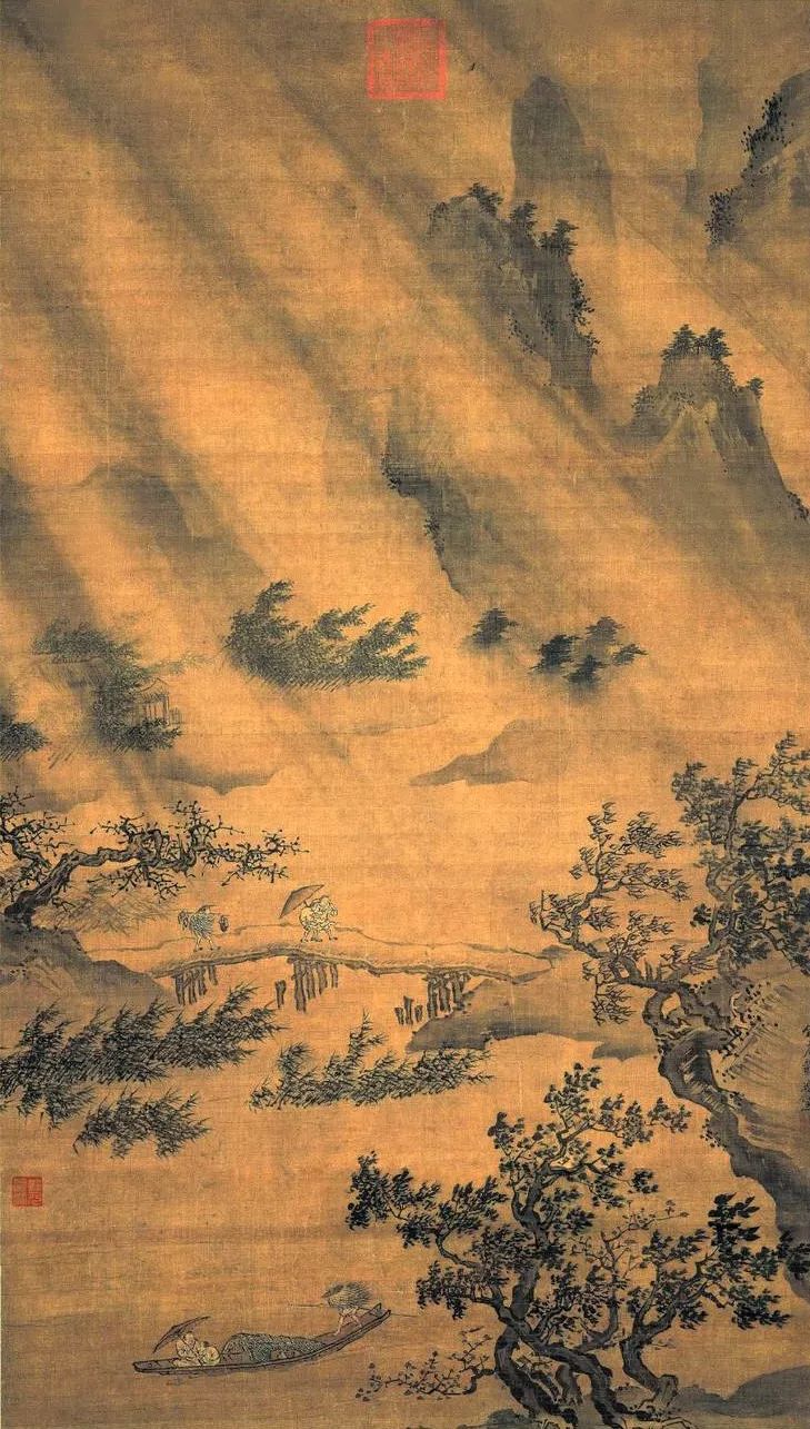 《江山渔乐图》为明代“浙派”画家吴伟所画,现藏于台北故宫博物院