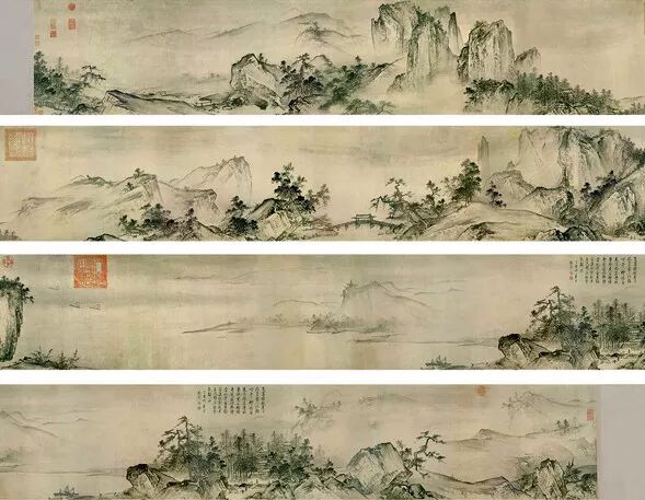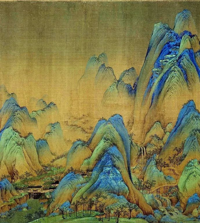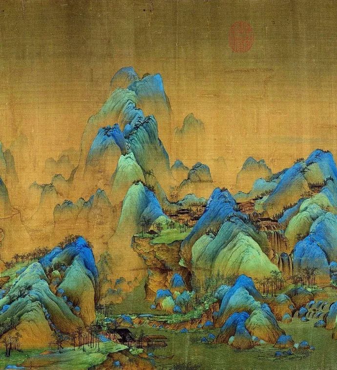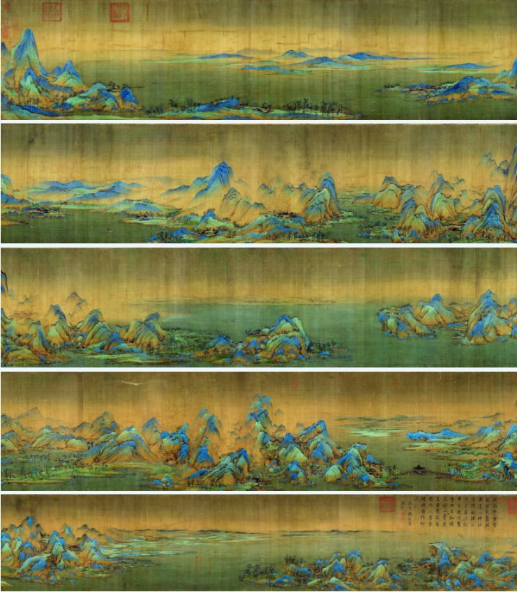 北宋青年画家王希孟《千里江山图》卷,绢本青绿设色,纵51.5厘米、横1191.5厘米,北京故宫博物院藏