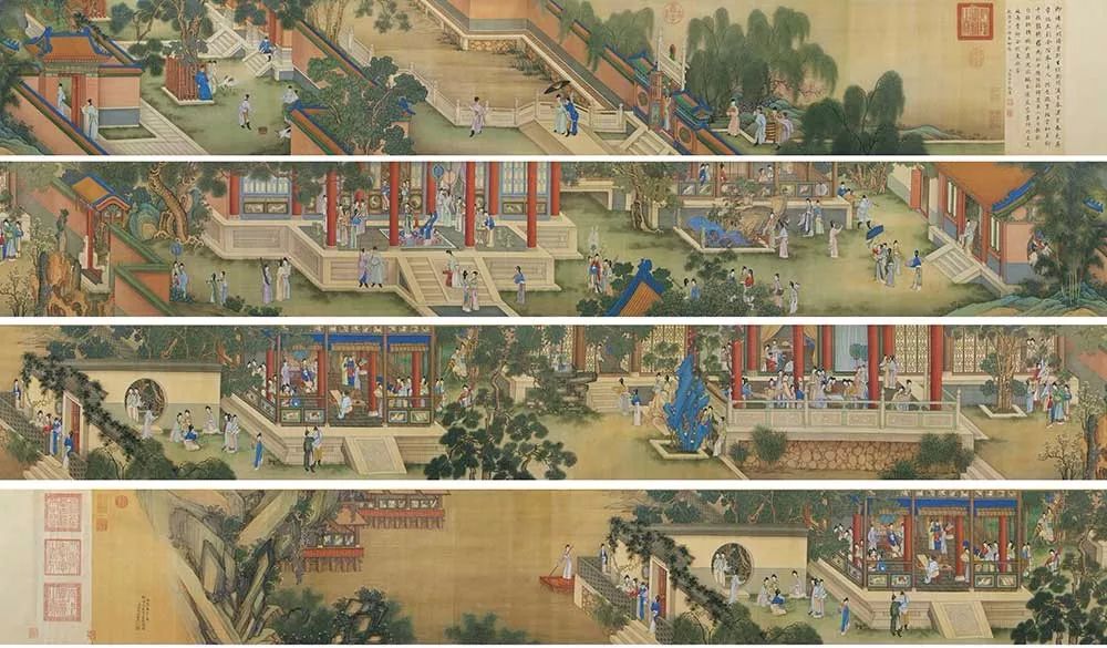 《汉宫春晓图》是中国重彩仕女第一长卷。绢本重彩,尺幅很大,纵30.6厘米,横574.1厘米,作为装饰性绘画来说属于巨制。汉宫春晓是中国人物画的传统题材,主要描绘宫中缤妃生活。