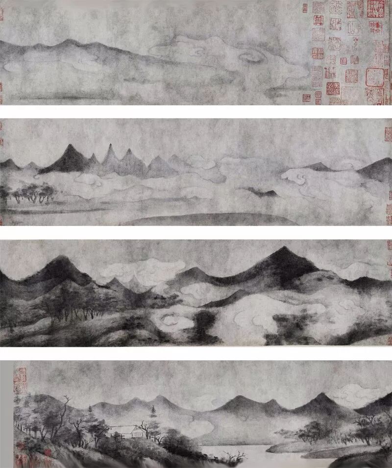 该画卷材质为茧纸本、墨笔,纵19.8cm,横289cm。该图绘潇湘奇观的景物,运用泼墨法和破墨法,依仗水墨的晕染来塑造形象。
