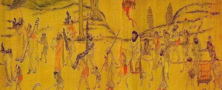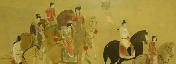 此图描绘的是天宝十一年,再现唐玄宗的宠妃杨玉环的三姊虢国夫人及其眷从盛装出游……