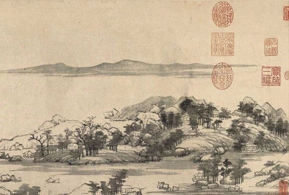 在王维的山水画中,尤其这幅《辋川图》所创造的淡泊超尘的意境,给人精神上的陶冶和身心上的审美愉悦,旷古驰誉……