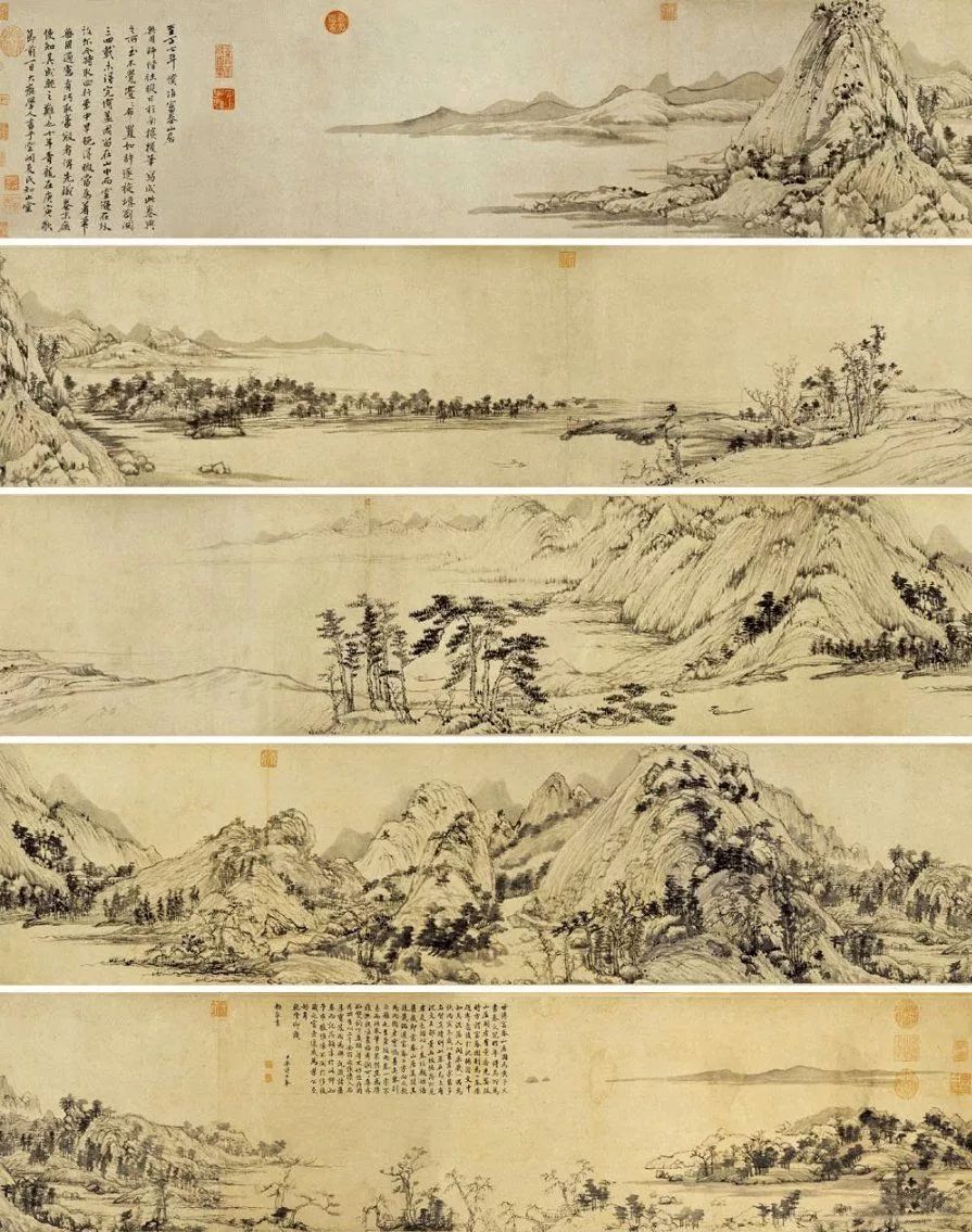 《秋兴八景图》,明代,董其昌,纸本设色,公8开,每段均纵53.8厘米,横31.7厘米,上海博物馆藏