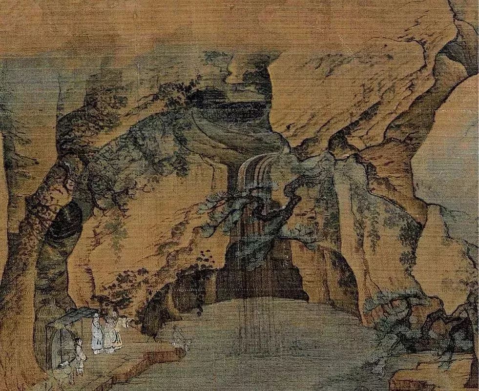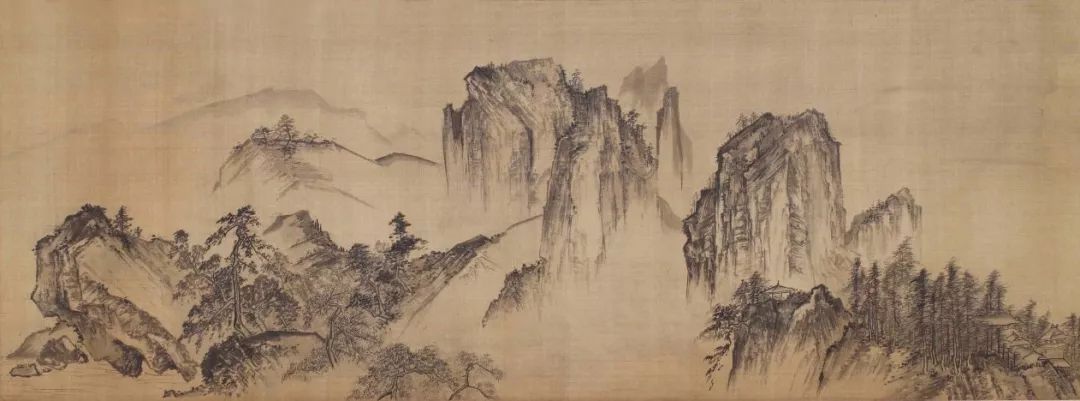 作者以粗阔扭曲的线条,描绘山石轮廓,再用干湿浓淡不同的墨色,层层皴擦出岩石表面的纹理,因为形状像卷曲的云块,所以称为「卷云皴」……