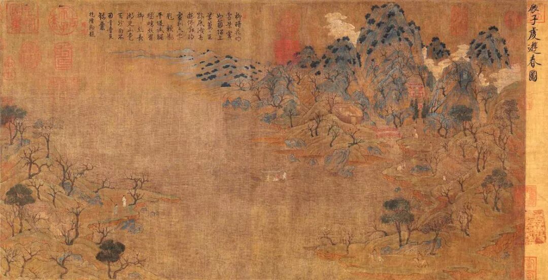 《游春图》长卷,绢本,设色,纵43厘米,横80.5厘米,现藏于故宫博物院。