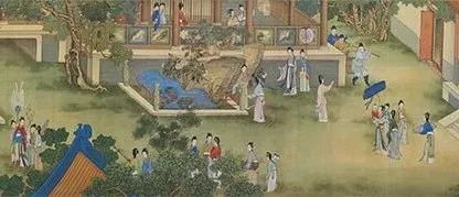 画中描写了六位衣着艳丽的贵族妇女及其侍女于春夏之交赏花游园……