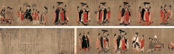 《职贡图》是南朝梁代萧绎所绘的绘画作品,原作已失,现存宋人摹本,绢本设色,纵26.7cm,横200.7cm(原为402.6cm),是中国绘画史上第一部辟用外域职贡人物为作画题材的工笔人物卷轴画,亦是现存最早的职贡图。同时也为后世研究绘画和历史提供了珍贵的史证材料。该摹本现藏于中国国家博物馆。