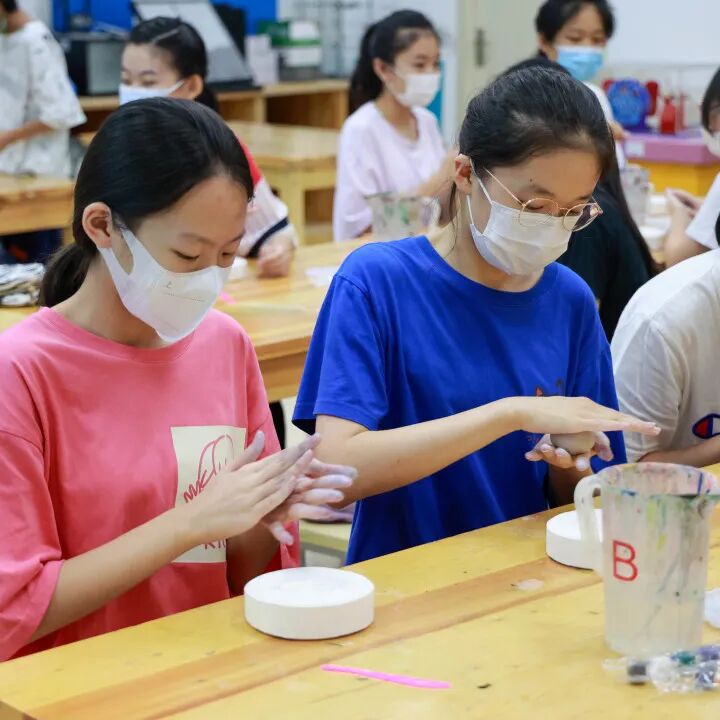 北京市自动化工程学校与北京陶瓷艺术馆举办的初中生传统文化陶瓷公益行暑期活动第一阶段圆满结束了,本次活动前后历时近一个月,来自北京市汇文中学垂杨柳分校、清华附中朝阳学校、北京市陈经纶中学本部初中、北京五十六中学等几十所学校的师生参与了本次活动。本次活动取得圆满成功离不开老师、家长们对我们的支持,以及同学们对传统文化的热爱。同学们在活动中体验了拉坯、扎染、彩绘杯垫和印坯等传统文化项目,参观了陶瓷艺术馆,加深了对传统文化、陶瓷文化的认知,既锻炼了动手能力,又开发了想象力与创造力。同学们在欣赏展品时,通过认识不同朝代的瓷器进一步对中国悠久的历史有进一步了解,学习陶瓷知识,认识新型陶瓷在生活中的应用。同学们说,感谢研学基地,这次活动十分有趣,让他们学到了很多以前从未接触到的知识,也制作了许多有个性的陶艺作品,新奇又有趣,希望再来北京陶瓷艺术馆参加活动。陪同孩子一起参与的家长们表示,感谢北京市自动化工程学校与北京陶瓷艺术馆为孩子们带来的传统文化陶瓷公益行活动,丰富了孩子暑期生活,在活动过程中认识新朋友,让他们开拓了眼界,增强了他们对于学习传统文化的积极性。也有老师认为,从最开始的对活动表示疑虑,到参加完整场活动,对本次活动有了新的认识,现在的孩子们缺乏亲近自然和学以致用的机会,通过拉坯、印坯等活动,同学们去感受与泥土互动的触感,沉浸式体验古人的生活,可以将生活和历史很好的结合起来,无论是对学习还是对学生观念的触动,都有非常大的帮助。本次活动是北京市自动化工程学校与北京陶瓷艺术馆为了响应教育部等11部门联合发布的《关于推进中小学生研学旅行的意见》的号召,在双减政策下,让孩子们更多更充足的时间投入到兴趣爱好上而举办的,致力于为同学们提供一个增长知识,开拓眼界的平台,让同学们度过一个充实愉快的暑假。