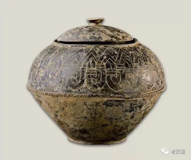 带盖竹编纹陶罐,崧泽遗址出土。
