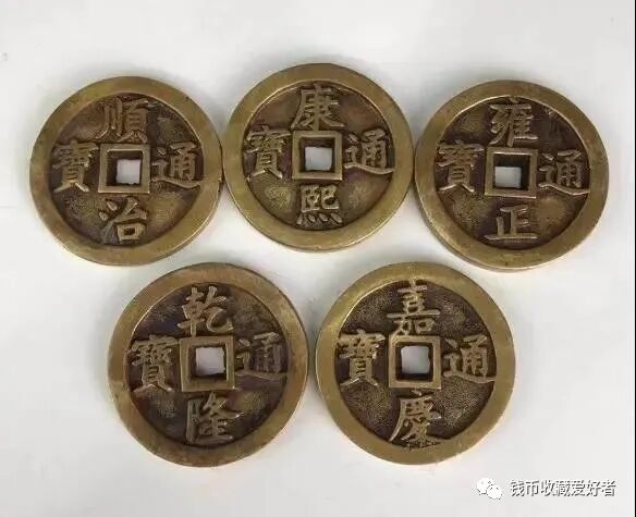 五帝钱有大五帝钱与小五帝钱之分,现在通说的五帝钱一般是指小五帝钱,是清朝最兴盛的五位帝王(顺治、康熙、雍正、乾隆和嘉庆)在位期间所铸造的古钱。这五位帝王相继在位180年,是清朝最辉煌的时期,在位期间国势强盛,出现了历史上著名的“康乾盛世”。(大五帝一般是指秦始皇、汉武帝、唐太宗、宋太祖和明成祖)![]()