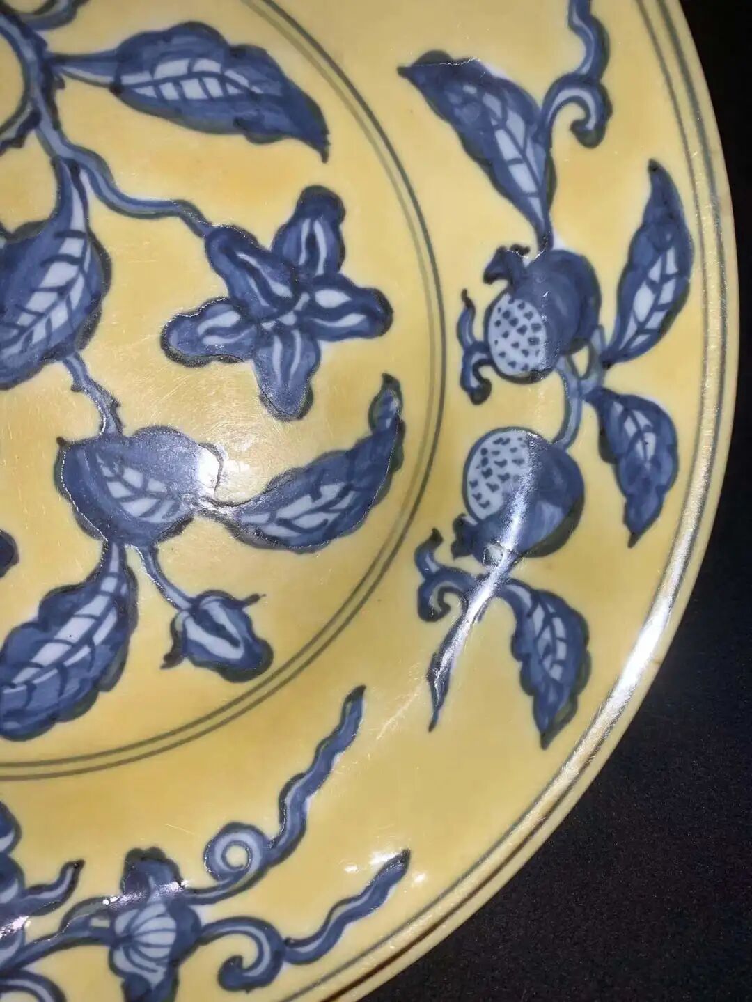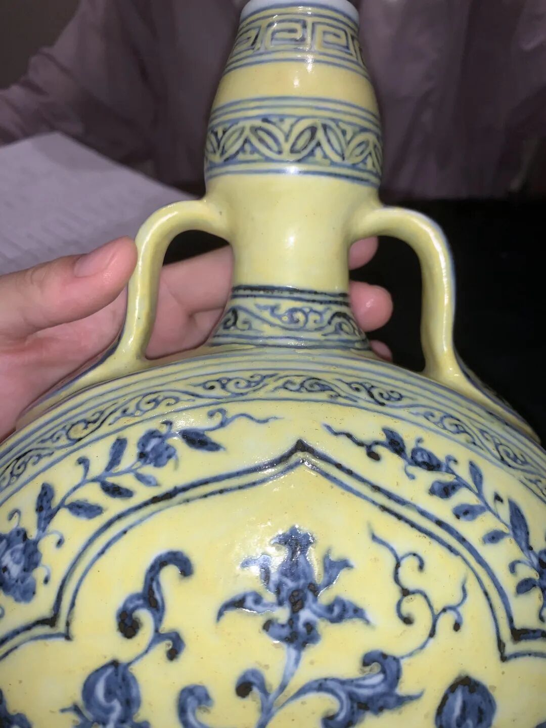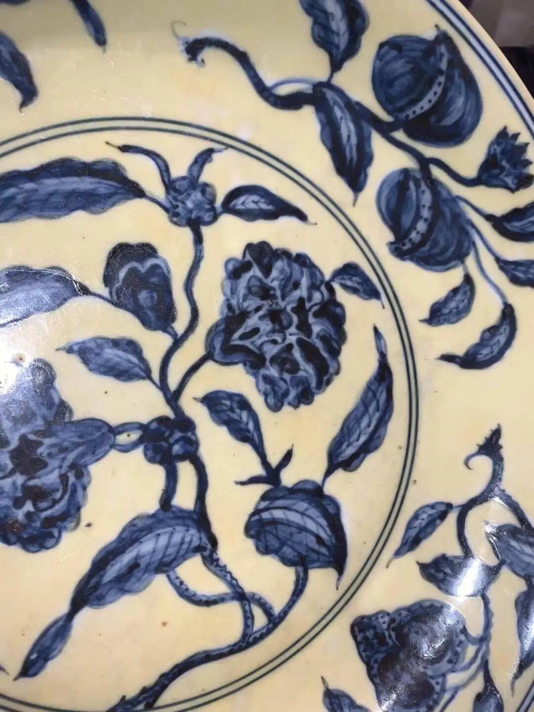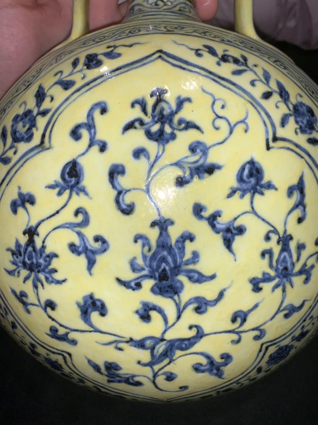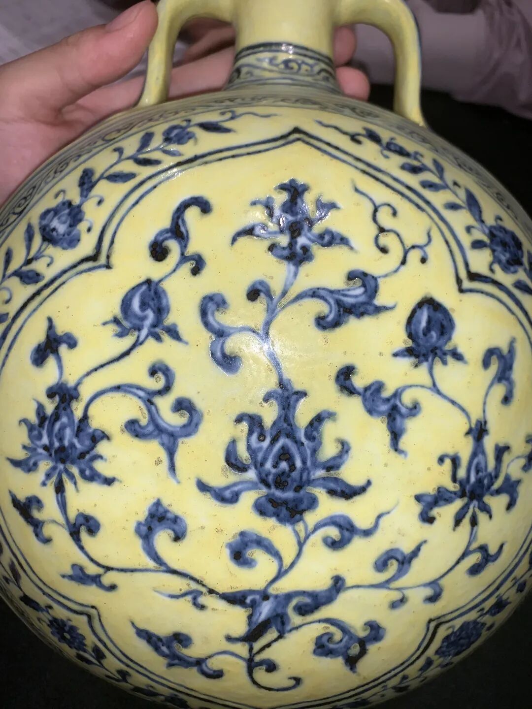明永乐 黄地青花如意垂肩折枝花果纹大梅瓶
