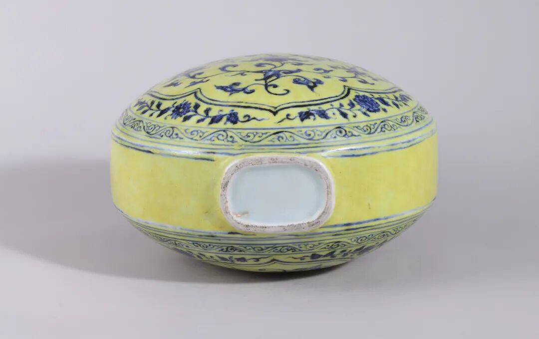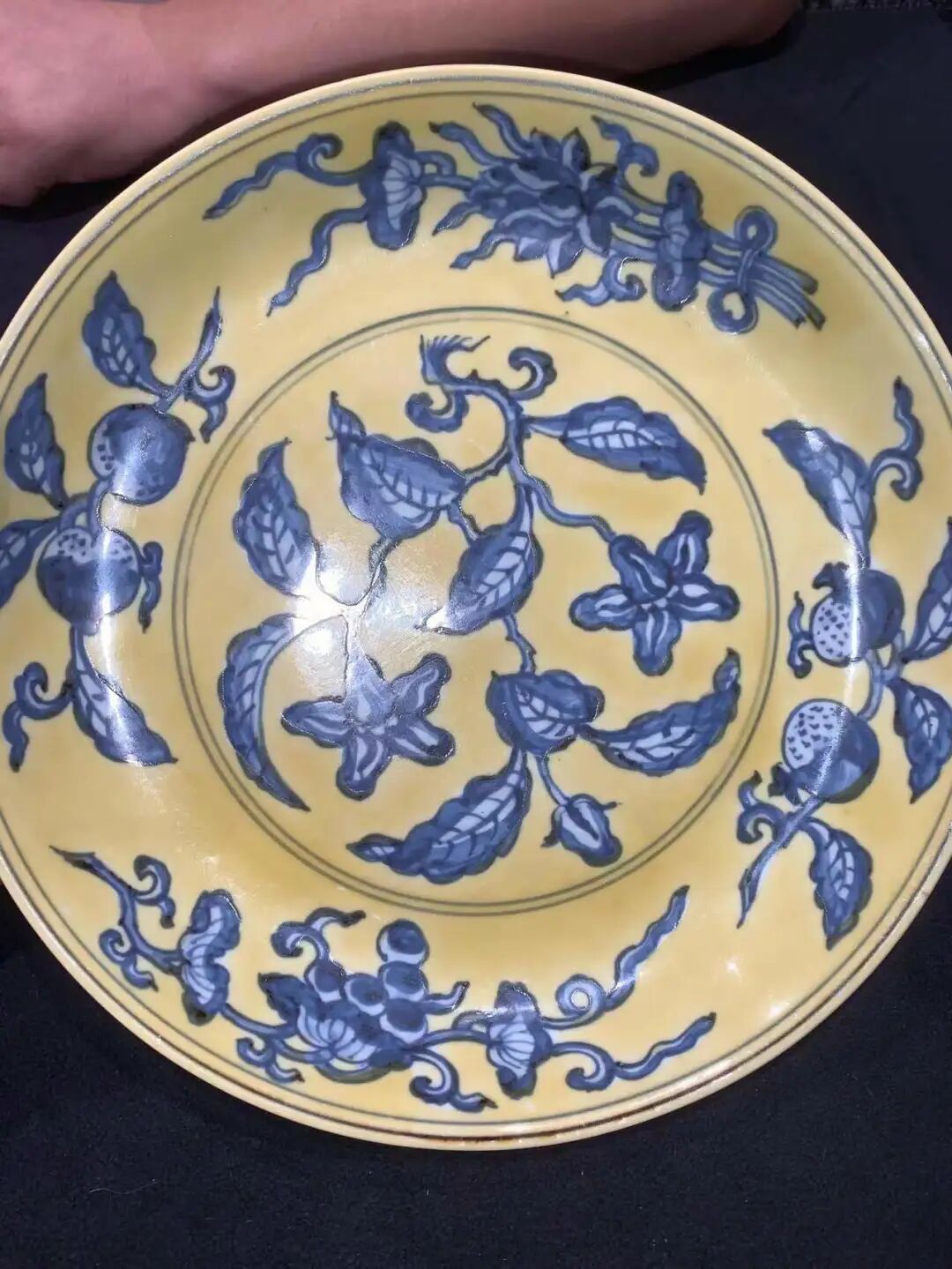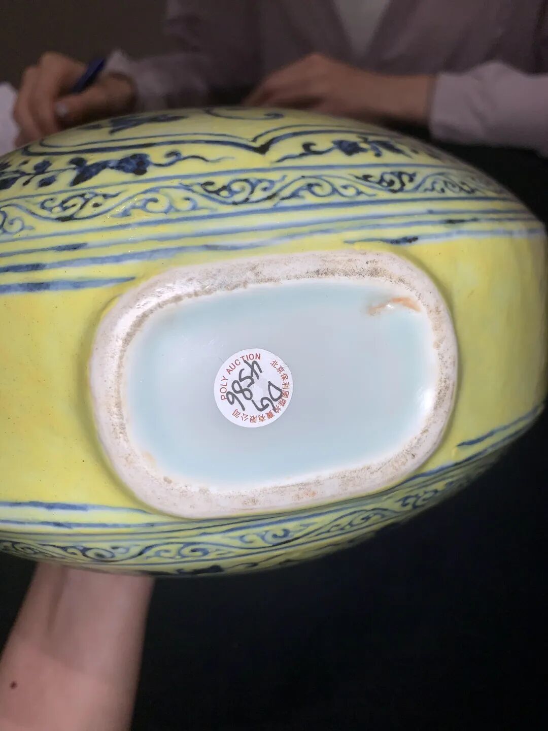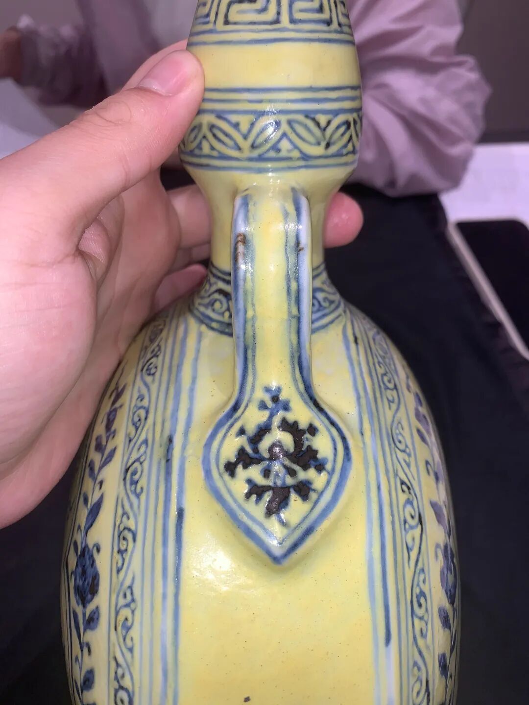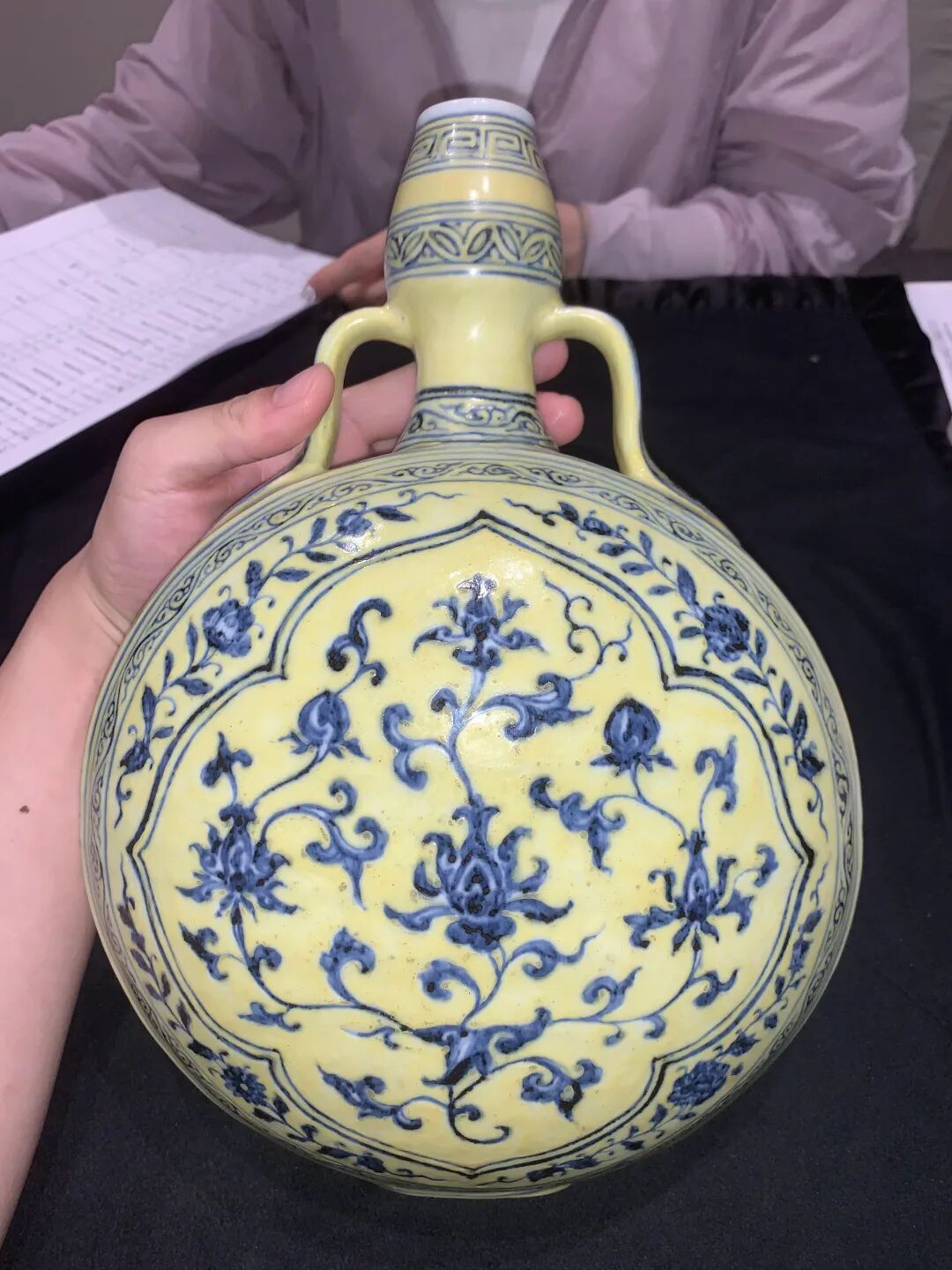 明永乐 黄地青花如意垂肩折枝花果纹大梅瓶