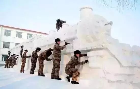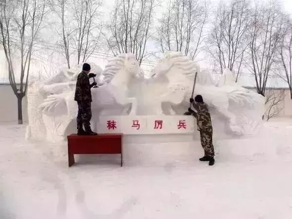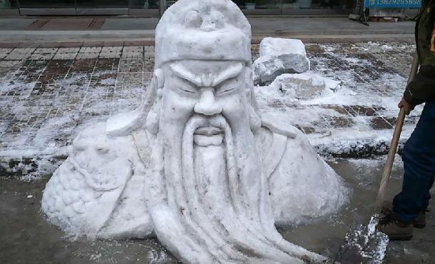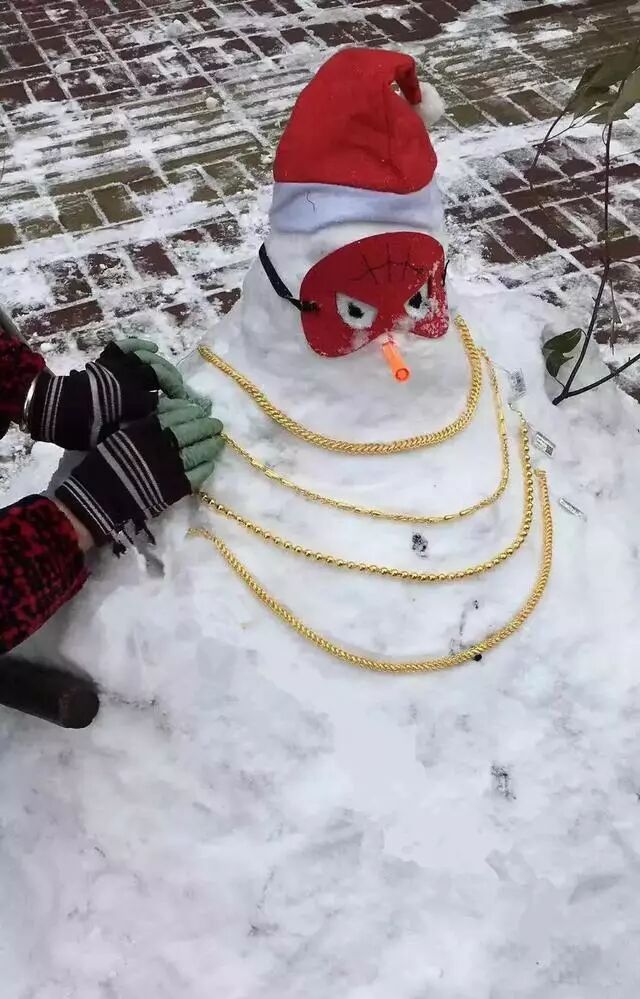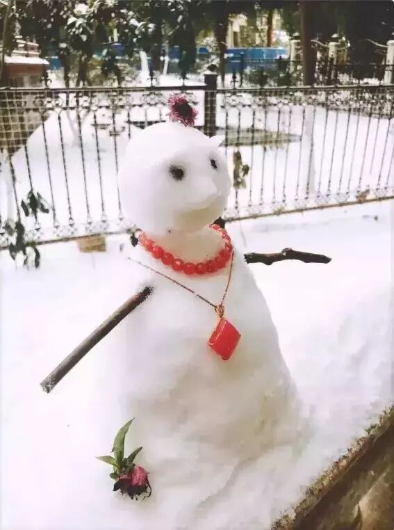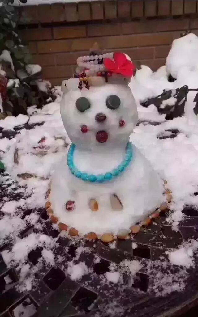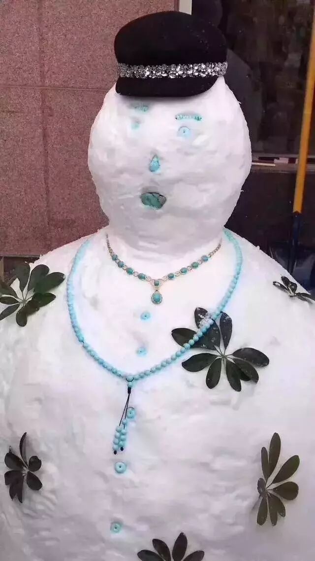 还有下面这专业级雪人,据说堆雪人的小伙儿是个玉雕师!