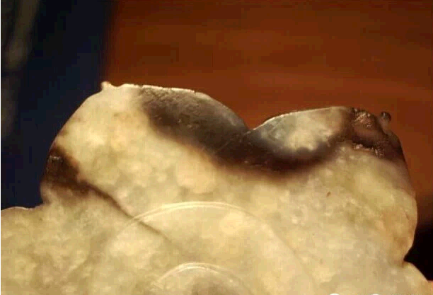这是玉石一种变质现象,多由氧化和复分解过程而形成比较疏松的物质,所以较为松脆,怕磕碰。这种钙化层就越厚。