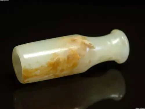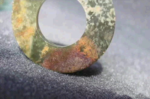 某种单一皮色基本能布满整器,包括色沁、石灰沁、土沁、水沁、钙化、包浆等,但并未将玉器的肌理渗透。时间需要1300年以上。