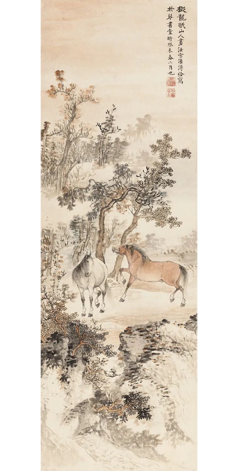 2.停云主人(魏廷荣)上款。停云主人即魏延荣(1890-1974),上世纪二三十年代法租界闻人,曾任法租界公董局行政委员会首任华人委员,雅好书画,与沪上名家来往密切,所藏皆精品,“天下第一王叔明”《青卞隐居图》为其旧藏,1950年捐献上海博物馆。吴仲熊号芳菲室主。浙江吴兴人。清光绪二十五年生(1899),卒年不详。幼嗜艺术,勤学不辍,于诗画皆有心得。弱冠时即蜚声艺苑,所作山水,淡远有致,别饶意趣,书法亦娟秀可爱。前辈顾西津、吴缶庐皆器重之。