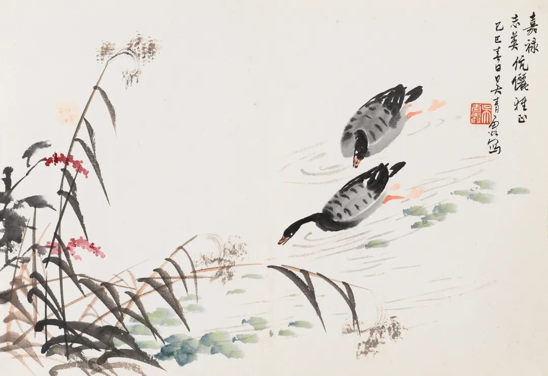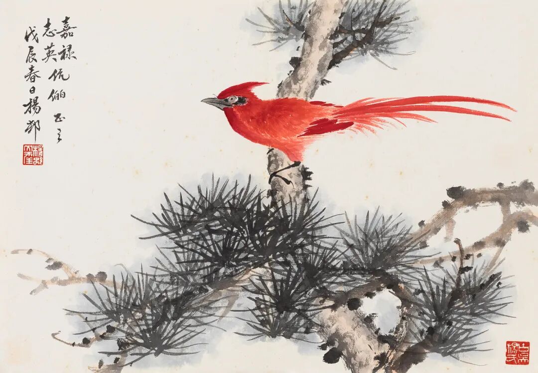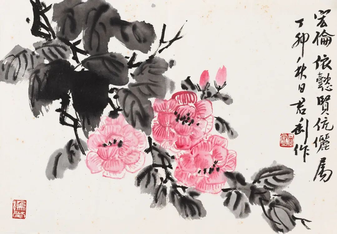 2.沈嘉禄上款。沈嘉禄,1931年11月生,上海人。上海城市书画研究院常务副院长,上海美协海墨中国画画师。与全国书画名家过从甚密。1993年上海朵云轩举办个人画展。杨邨(1914-1995)字荻岭,斋名“绿杨村舍”。1939年从师与花鸟画名家江寒汀门下,长达13年之久。身前为中国老年书画研究会上海分会会员,上海美术家协会会员。
