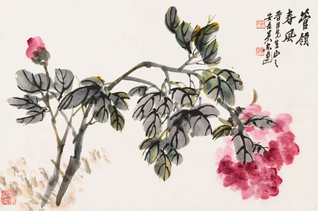 2.晋臣(袁爽)上款,“晋臣”即袁奭(1907-?),号晋臣,又作金城,上海银行家,与吴湖帆、冯超然、江寒汀等诸多沪上名家交善,富收藏。吴东迈(1886—1963)又名吴迈,浙江安吉人,寓上海。吴昌硕第三子。曾任昌明艺术专科学校校长。1956年起任上海中国画院画师,中国美协上海分会会员,上海文史市馆馆员上海中国书法篆刻研究会会员。