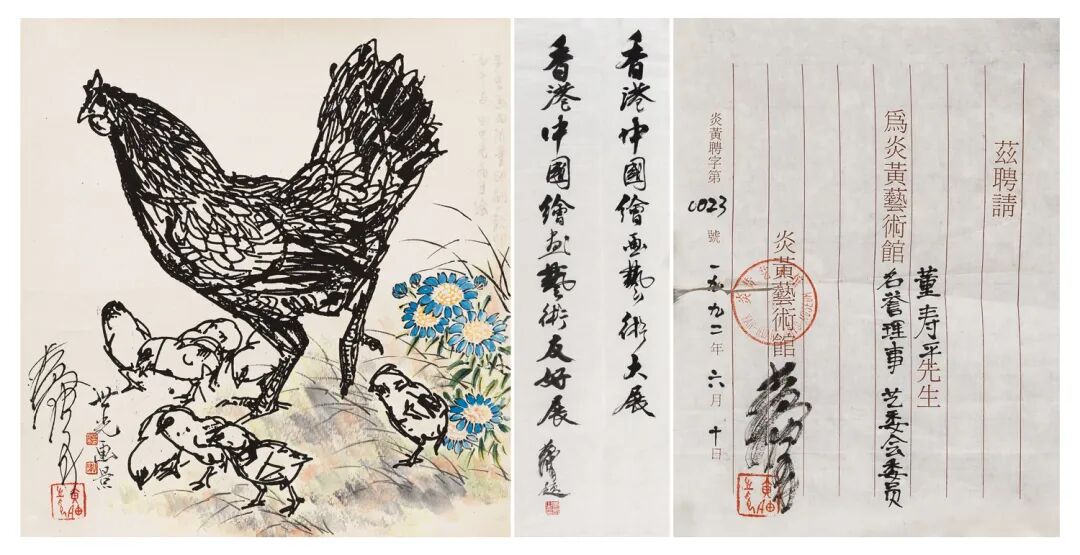 1.黄胄书法、信札;黄胄、田世光手绘;黄胄画限量印刷,款印为手写;田世光为手绘“鸡”。