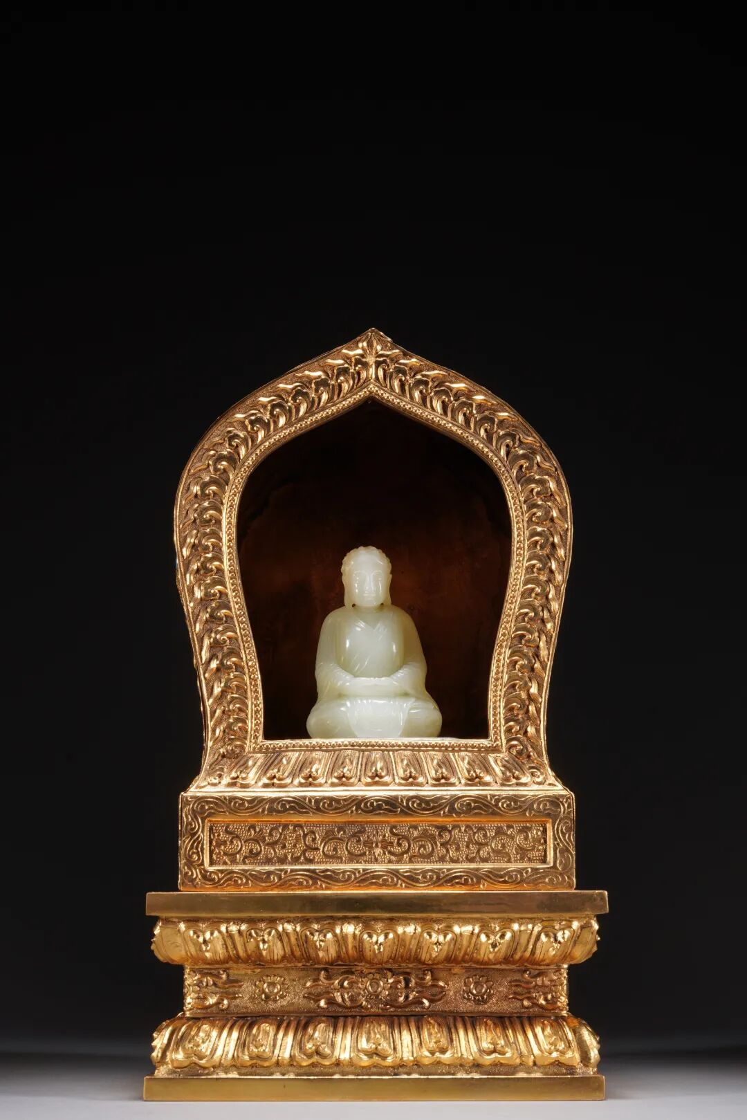 白玉佛高:8.5cm 佛龛高:31.5cm