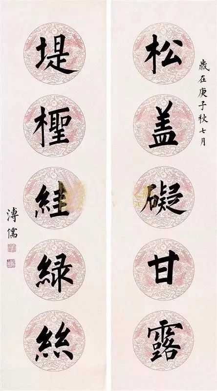 溥氏虽然也收藏有北碑拓本,从其书法风格来看,似乎对其影响不大,作品中所呈现的依然是比较正统的帖派风格。从现存溥氏楷书作品来看,大楷多见柳字结体及笔意,柔中见刚,可见其早年所习柳体一直影响着后来的书写习惯。其大字楷书往往起收笔及转折处外露笔意多于内敛笔意。