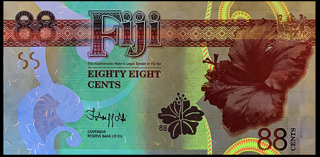票面随处可见用超微缩文字书写的“Good Luck&good fortune,Mayprosperity be yours”、“Fiji 88 cents”的英文字母。技术要求更高,生产难度更大,防伪性能更好!![]()