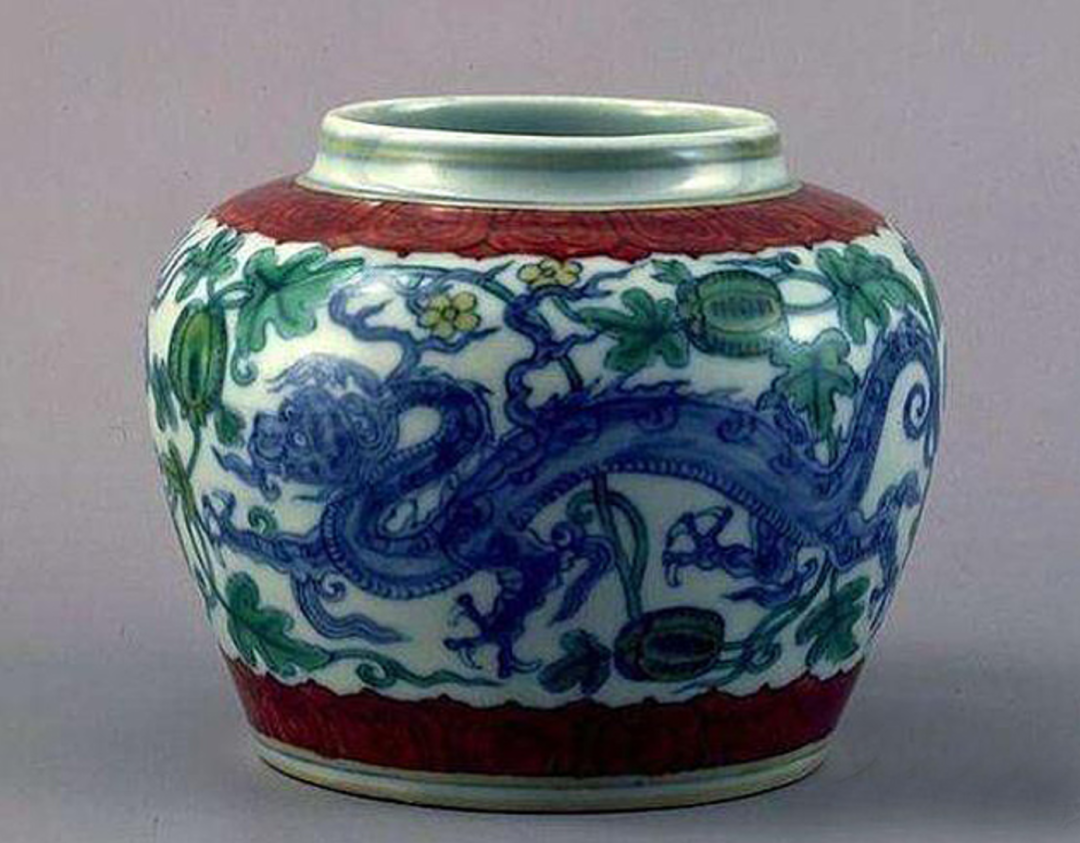 成化斗彩藤瓜果龙纹天字罐日本东京国立博物馆