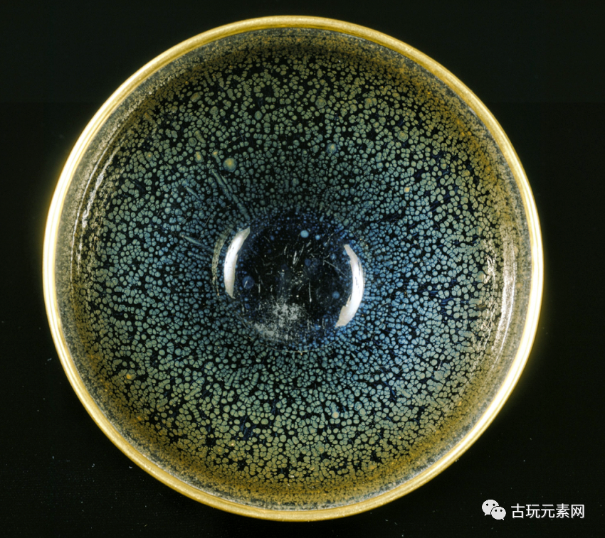 兔毫者,举世稀珍,釉色盈润光洁,与建窑名品油滴相类,唯纹式有异。细观兔毫其纹,纤俊秀逸,宛若清清细雨,随云起,破长空醉舞,飘然落,又如屡屡银波,伴明月,邀静夜轻风,拂水过。建窑兔毫,谦素而内敛,多为佛寺所用。黑盏鬪茶,击拂见白花,清晰可辨,易于观色,宋人尽皆追之。徽宗赵佶,钟迷茶事,曾言道,「盏色贵青黑,玉毫条达者为上」。镰仓日本,舶入大宋精髓,尚建盏、研茶道、修禅门,人尽奉之,以为致珍。