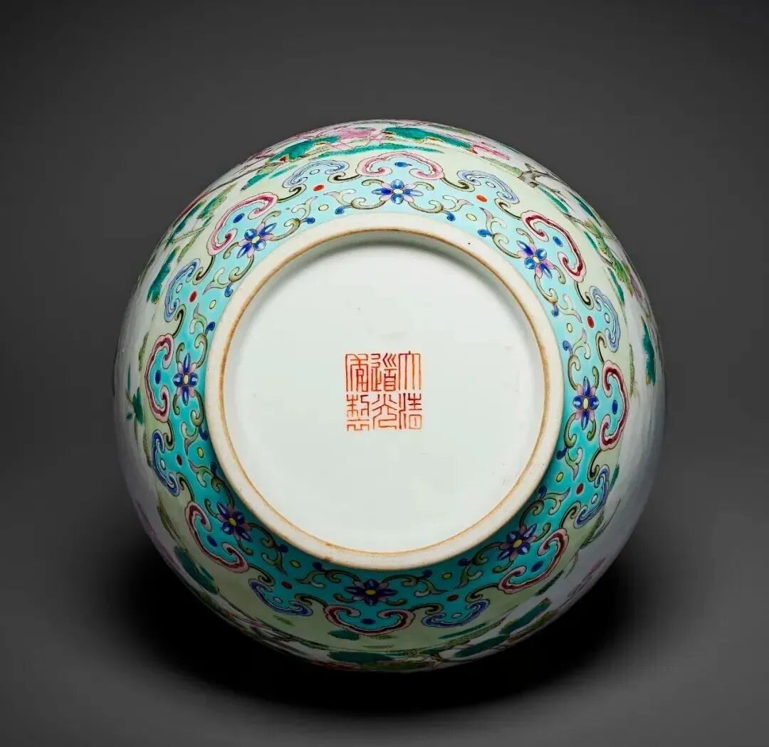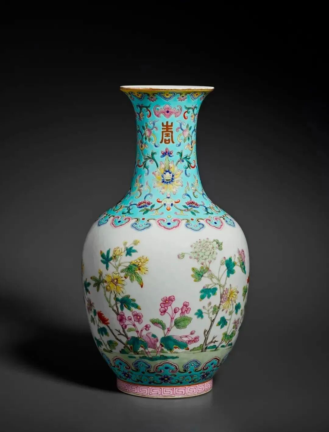 清道光粉彩秋季花卉纹瓶矾红六字篆书款