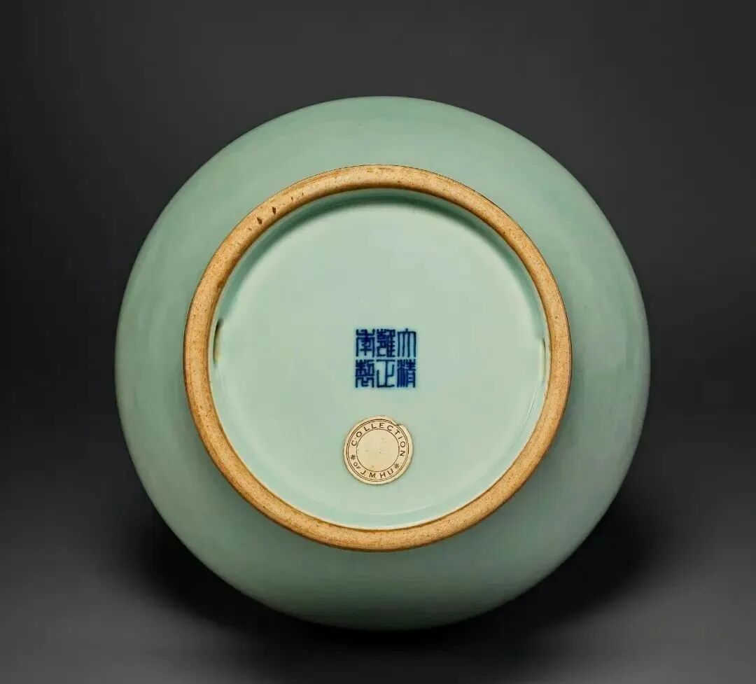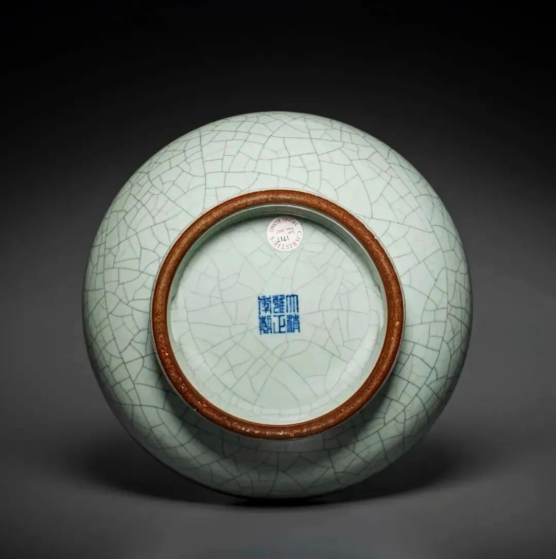 清 雍正仿哥釉瓶六字篆书款