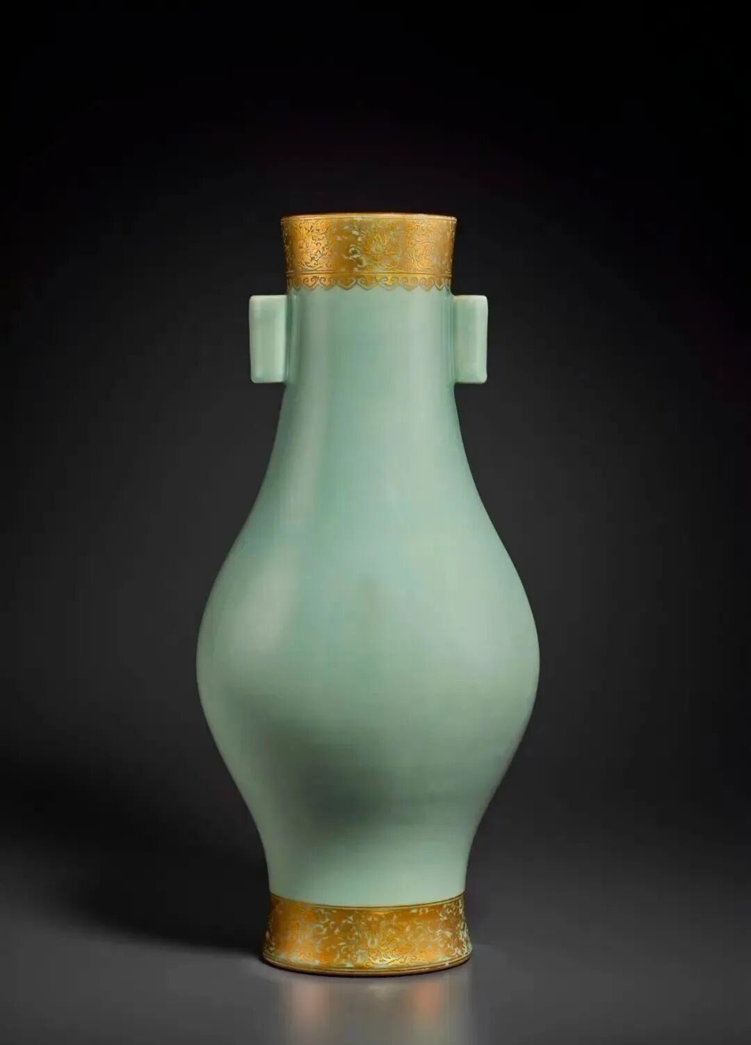 清 雍正粉青釉描金花卉纹橄榄瓶