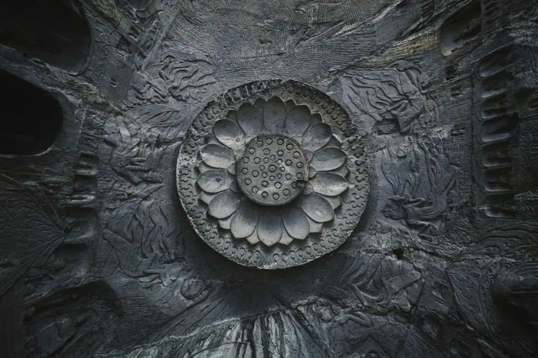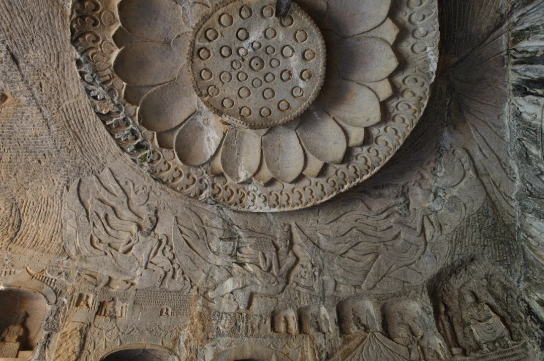 莲花是佛教象征的名物,石窟窟顶多以莲花作为装饰,但像莲花洞窟顶这样硕大精美的高浮雕大莲花,在龙门石窟也不多见。
