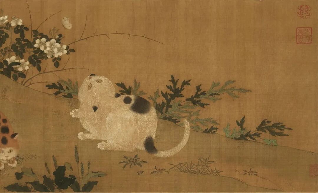 无论宫廷与民间,猫蝶图的流行从未停歇,寄托着不同时代阶层的人们对长寿安康的共同愿望;在文人笔下,猫蝶图又成为一面自勉的镜子,象征君子修炼心境、克制私欲的自我表达。