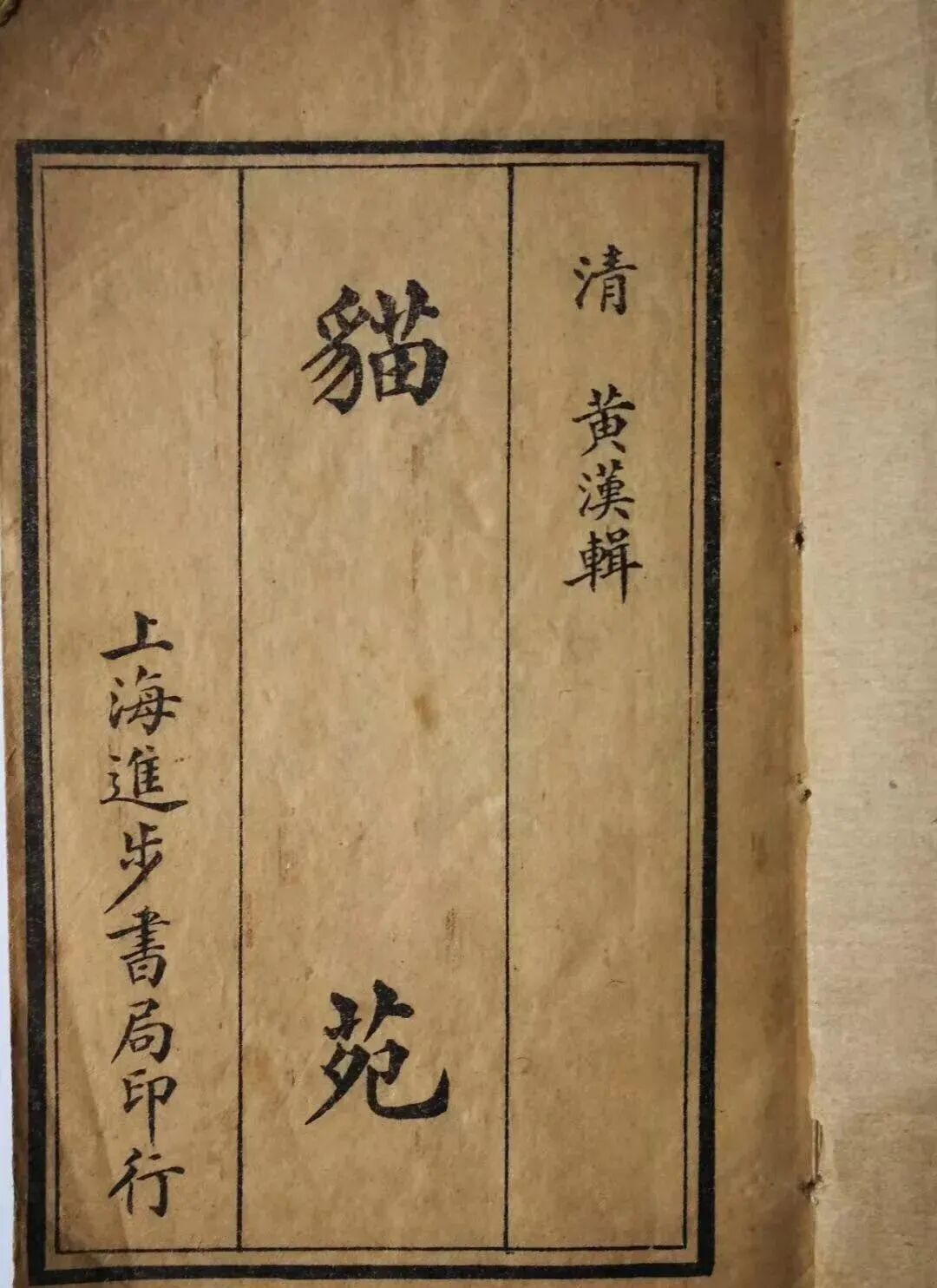 清咸丰年间黄汉出了一辑《猫苑》。书有上下二卷,分种类、形象、毛色、灵异、名物、故事、品藻七门。